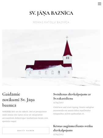 Izvēlies šo lielisko veidni un izveido izcilu mājas lapu baznīcai vai reliģiskajai organizācijai. Vienkāršs, tīrs izkārtojums padara veidni vizuāli pievilcīgu un parocīgu gan esošajiem biedriem, gan jaunajiem apmeklētājiem. Visa svarīgākā informācija, kā pakalpojumu grafiks, baznīcas ikdienas pasākumu kalendārs, īss vēstures apraksts un kontaktinformācija ir viegli pieejama.